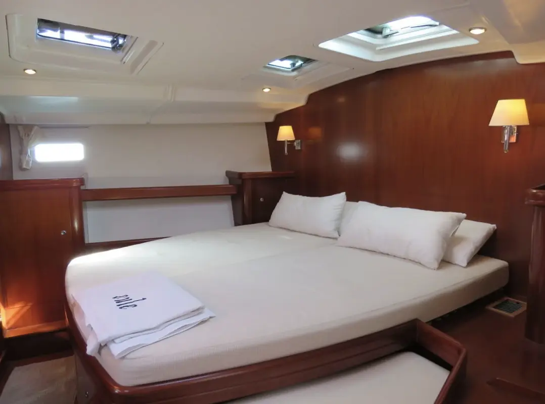 Descubre el Oceanis Clipper 523 de GUIROBEL en Valencia. Equipado con 3 cabinas, aire acondicionado y generador de energía. Reserva tu día en el mar.
